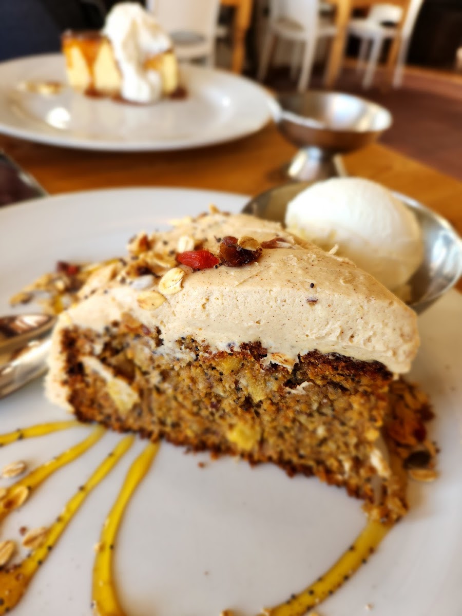 What an absolute gem!!! Found this little place when searching for a spot to have late lunch on a family vacation in the Cape. And they did not disappoint! Had a wonderful burger with blue cheese and my husband and son had the beer battered hake. Dessert was cheesecake and carrot cake with some coffees. Amazing food all around! The decor and atmosphere is quaint and artistic and the place feels very laid back and calm. All in all we had a great time and I would absolutely recommend this as a stop for anyone who is in the mood for a laid back breakfast, lunch or dinner packed full of flavour!